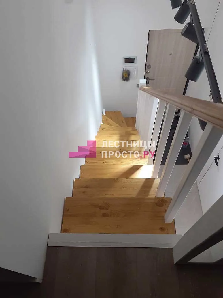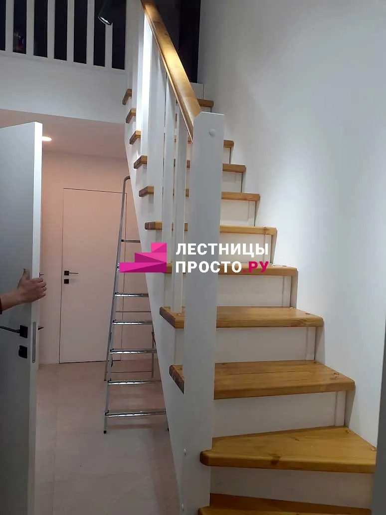 Лестница LP из сосны на второй этаж с поворотом на 180 градусов