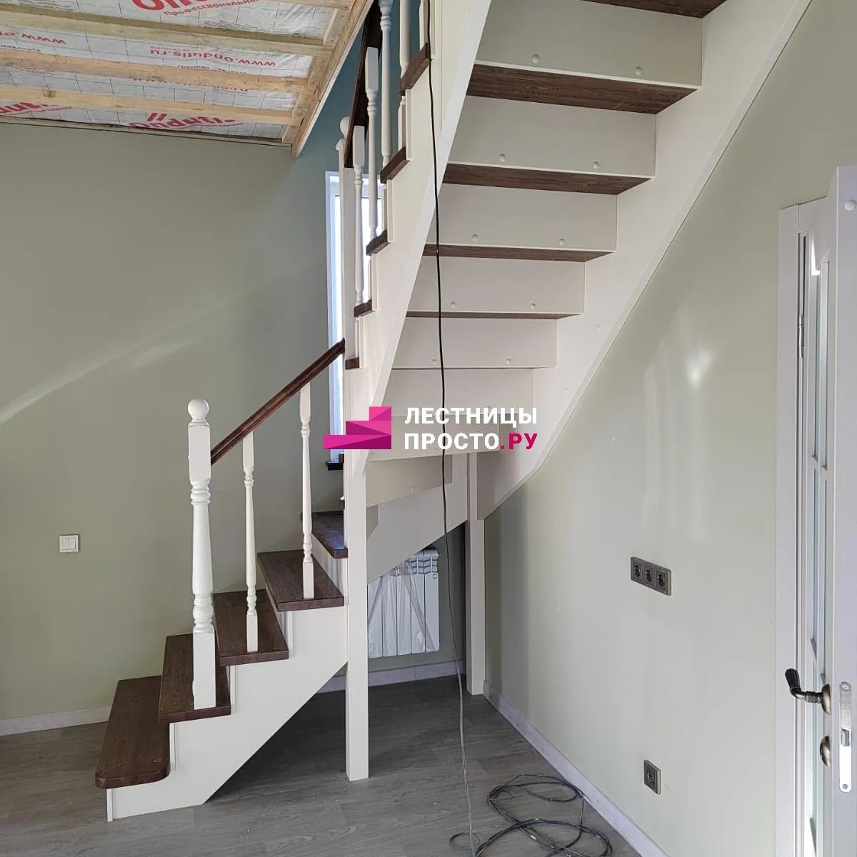 Лестница LP из сосны на второй этаж с поворотом на 180 градусов